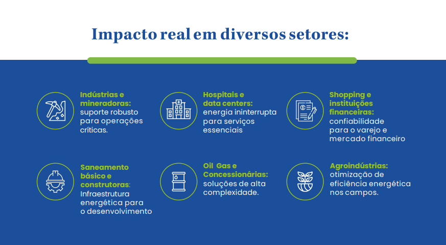 Em ambientes industriais, comerciais e de infraestrutura, a energia elétrica é um ativo estratégico. Falhas no fornecimento impactam diretamente a segurança, a produtividade e a continuidade das operações. Em cenários com infraestrutura antiga, expansão de demanda ou ausência de rede disponível, o desafio deixa de ser apenas fornecer energia, passa a ser garantir confiabilidade operacional, conformidade técnica e capacidade de resposta rápida.